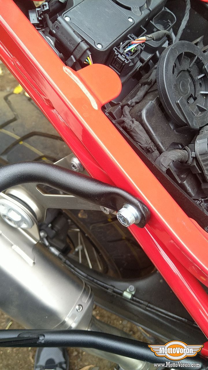 При установке цельносварных багажных систем и боковых рамок, на большинстве мотоциклов, необходимо «отпустить» крепления кронштейна подножки пассажира, чтобы можно было его двигать.