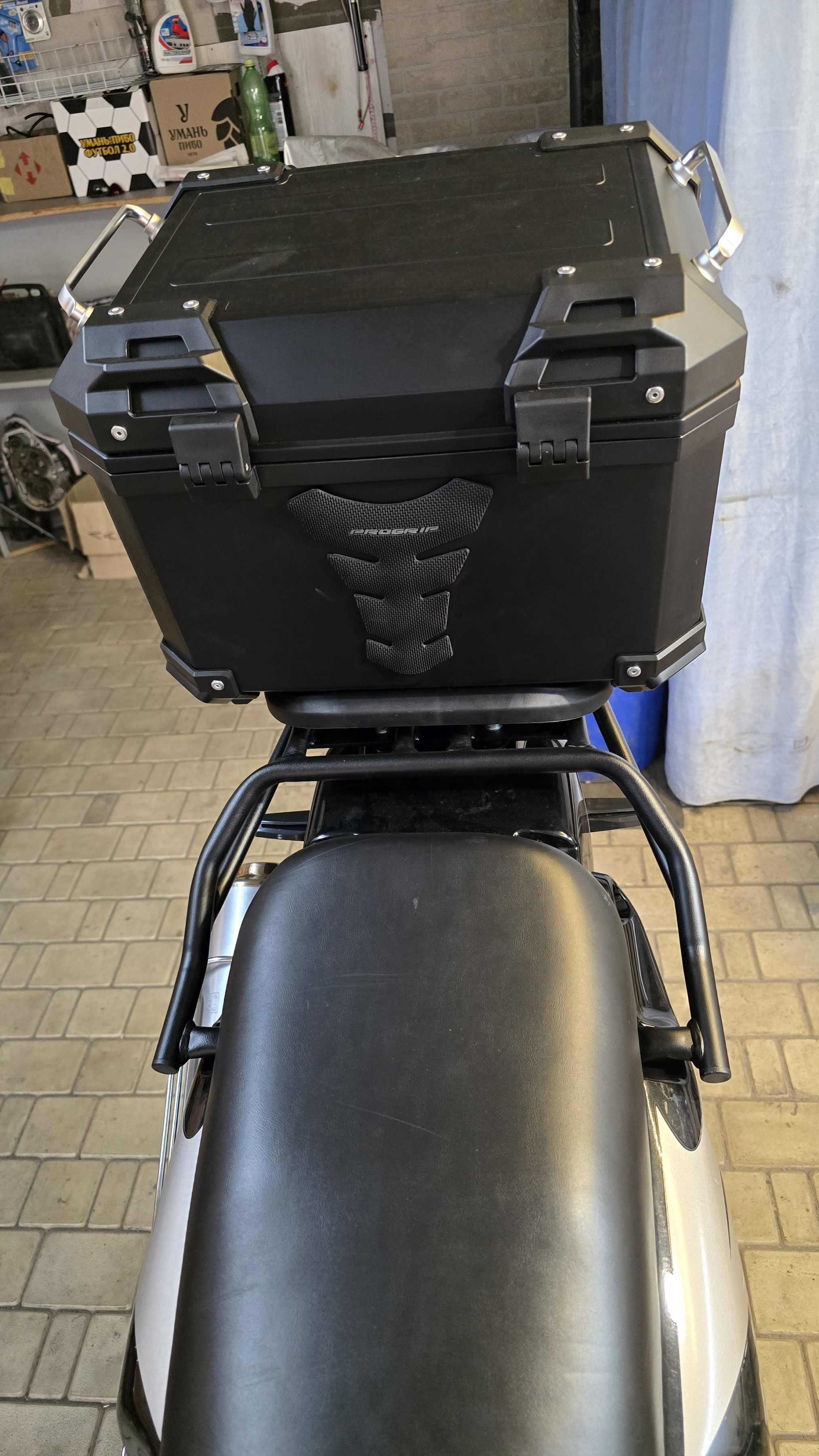 Також головний момент, що Ви замовили звичайну конструкцію багажника. Ми рекомендуємо до 5 кг навантаження на неї (ідеальні умови використання - це поїздки з пустим кофром, а тільки на зупинках його навантажити шоломом). Зверніть увагу, якщо мотоцикл стоїть то це 5 кг, а коли починає рух то від швидкості та дороги це навантаження зростає в декілька разів.