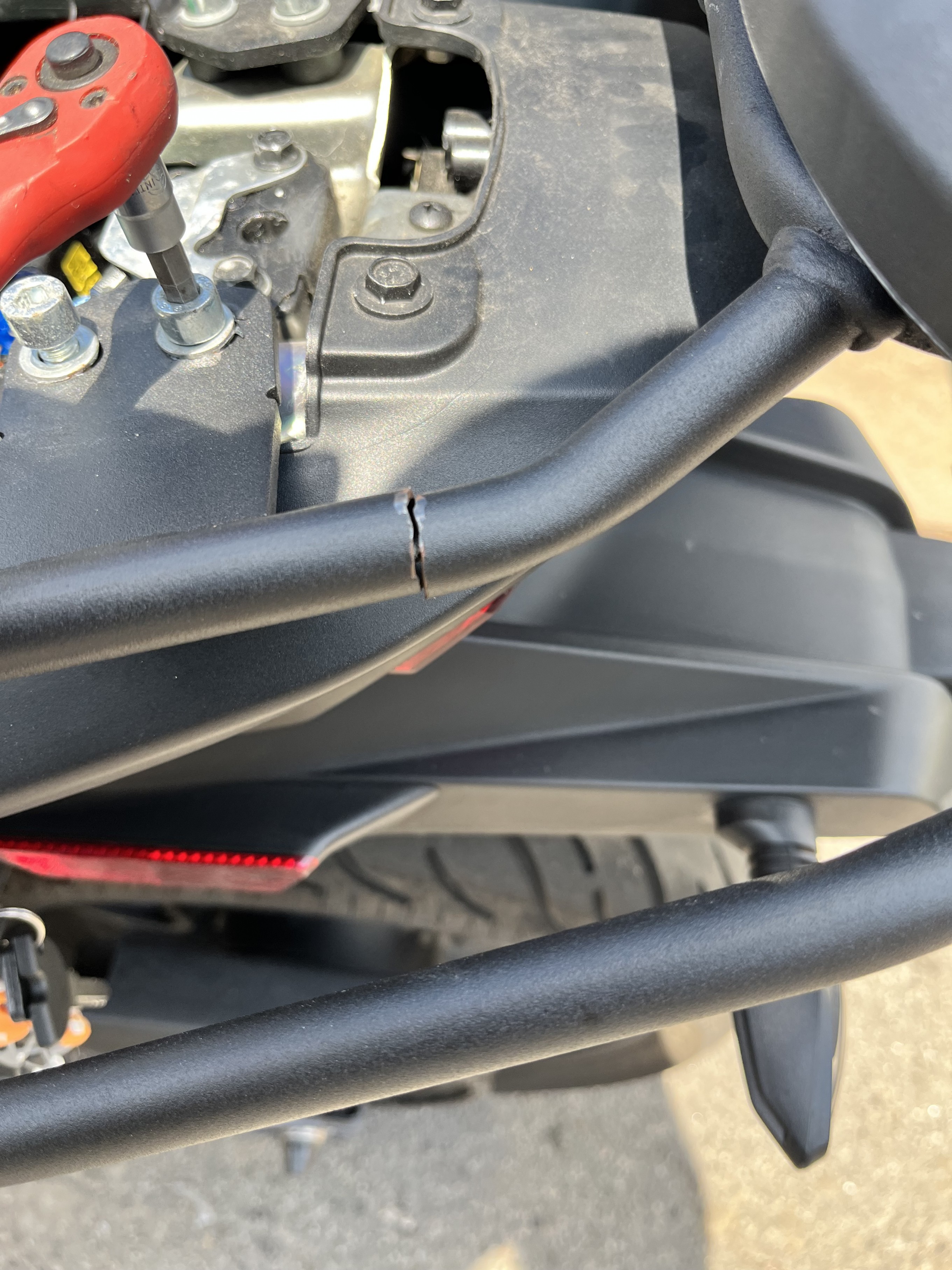 Давайте з початку, що Ви купили багажник звичайної конструкції (непосилений) для Bajaj Dominar. Якщо Ви вивчали інформацію по Вашому мотоциклу, то бачили, а може і відчували підвищені вібрації с заводу. Також власники Dominar побачили тріснутий підрамник після встановлення литих багажників інших виробників. Тому ми враховуючи ці конструктивні особливості Вашого мотоцикла виготовили конструкцію яка при навантаженні може взяти на себе всю енергію та не передати її на підрамник. Таким чином ремонт буде в декілька разів простіше, бистріше та дешевше.